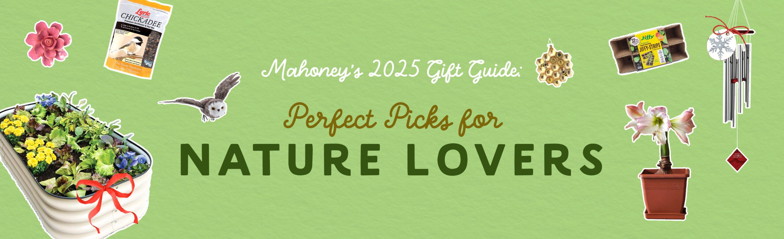 Celebrate those who feel most at home in the great outdoors with gifts that capture the beauty and calm of nature. From wind chimes and bird baths to ceramic flowers and sea-inspired lights, these thoughtful picks bring the serenity of the garden to any space. Help them prepare for the seasons ahead with garden gear, raised beds, and seed-starting supplies—or bring the outdoors in with amaryllis and paperwhite kits, terrariums, and microgreens. Please Note: Each store’s distinctive collections will vary. Shop your favorite Mahoney’s for a unique holiday shopping experience.