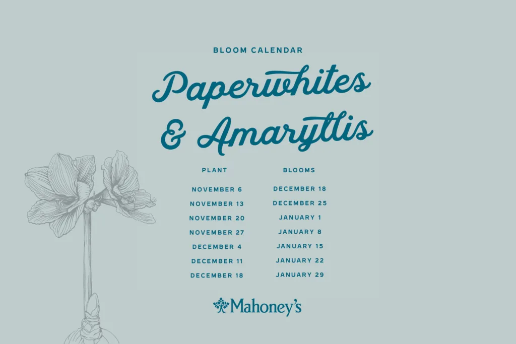 Both amaryllis and paperwhites take about 6–10 weeks to bloom, so early November is the perfect time to plant. Here’s how to get them growing and glowing in time for Christmas.
